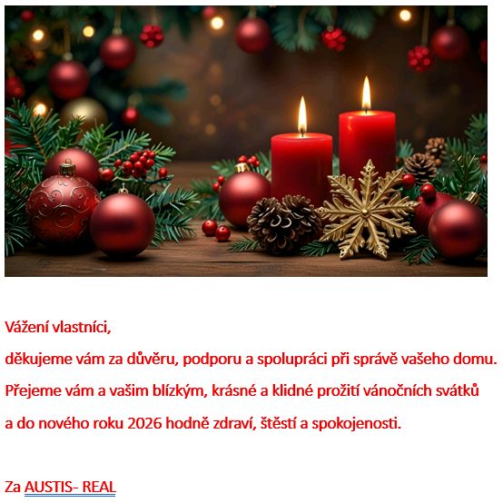 dnes Vám budou mailem distribuovány nové předpisy záloh platné od 2025/03. S použitím nového programu nám umožnuje sloučení všech Vámi vlastněných prostor do jednoho konta a jednu úhradu za všechny vlastněné prostory. V minulosti tento způsob placení byl, ale byl problém s vyúčtování služeb, nyní se k tomuto vracíme a budete dostávat jedno vyúčtování služeb.